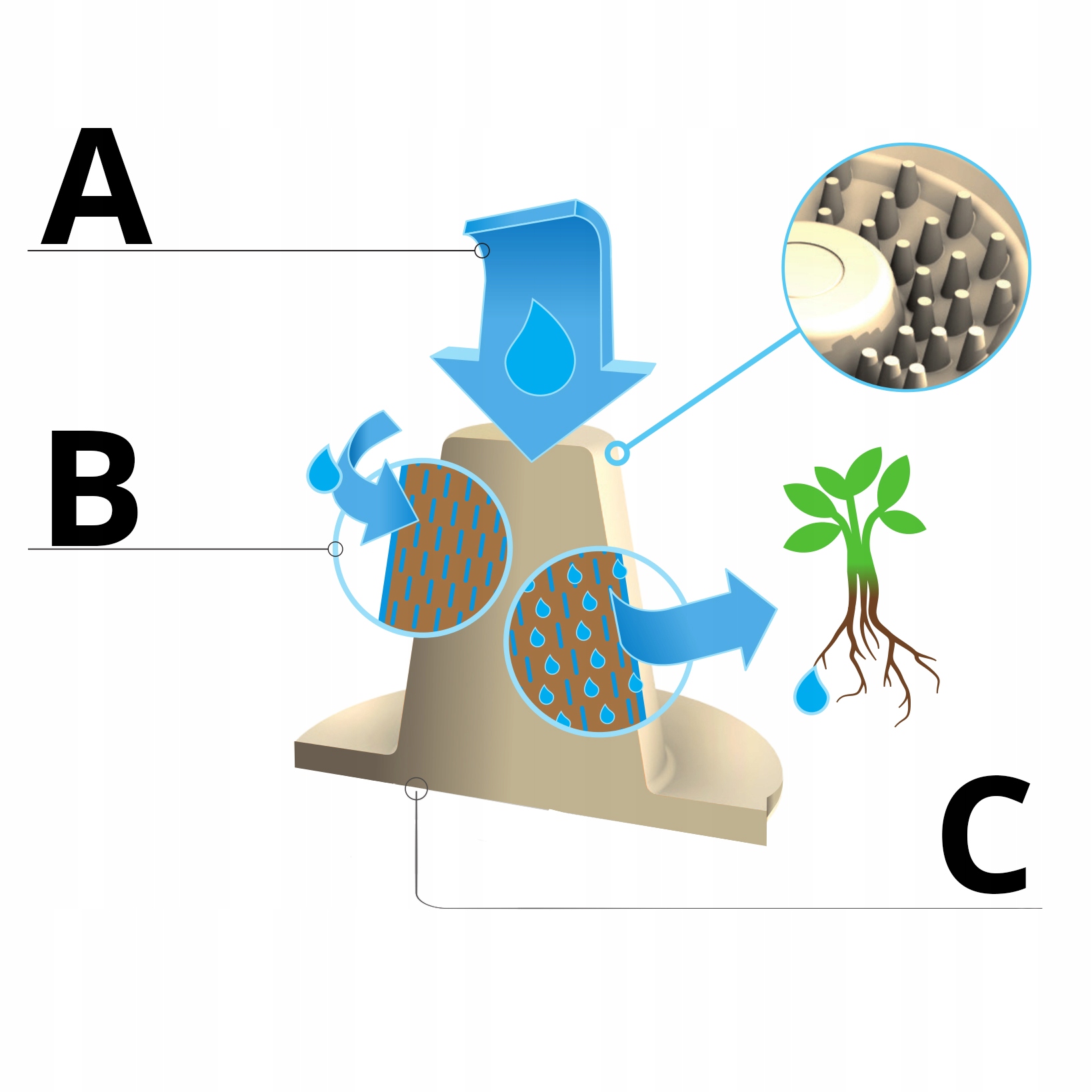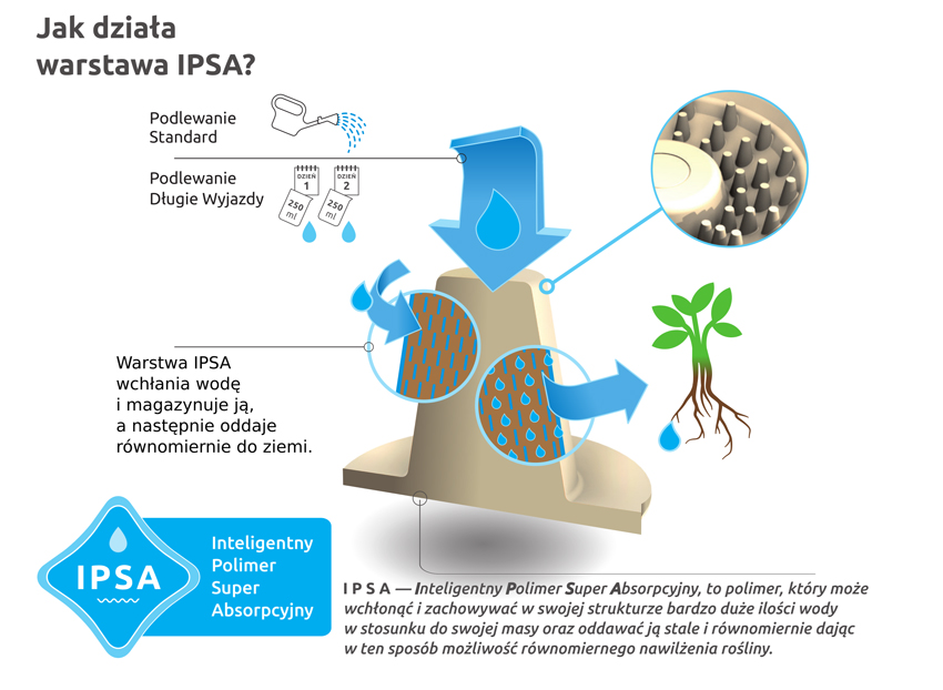 B — Warstwa IPSA wchłania wodę oraz magazynuję ją, a następnie oddaje równomiernie do ziemi.