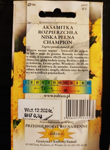 Wysiew: marzec-kwiecień do skrzynek. Rozsadę wysadzamy do gruntu w maju.