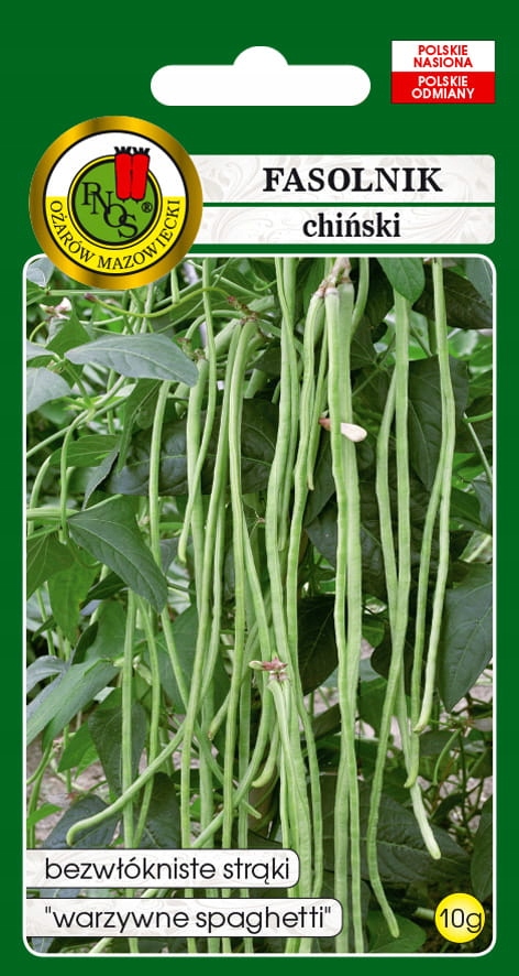 Fasolnik chinski – Wspięga chinska to pnącze osiągające około 3m wysokości, podobne w smaku do fasolki szparagowej. Wymaga ciepłego, słonecznego i zacisznego stanowiska. Owoce fasolnika mają kształt cienkich strąków, które osiągają długość od 30cm do 100cm. Pierwszy zbiór strąków około 60-70 dni od wysiewu. Zbiory należy wykonywać sukcesywnie. Owocuje do pierwszych przymrozków. Strąki fasolnika można spożywać w różnych formach – na surowo, gotowane, smażone, suszone, marynowane. Doskonałe do mrożenia. Fasolnik jest bardzo smaczny zawiera dużo cukrów prostych, więcej niż fasolka szparagowa.