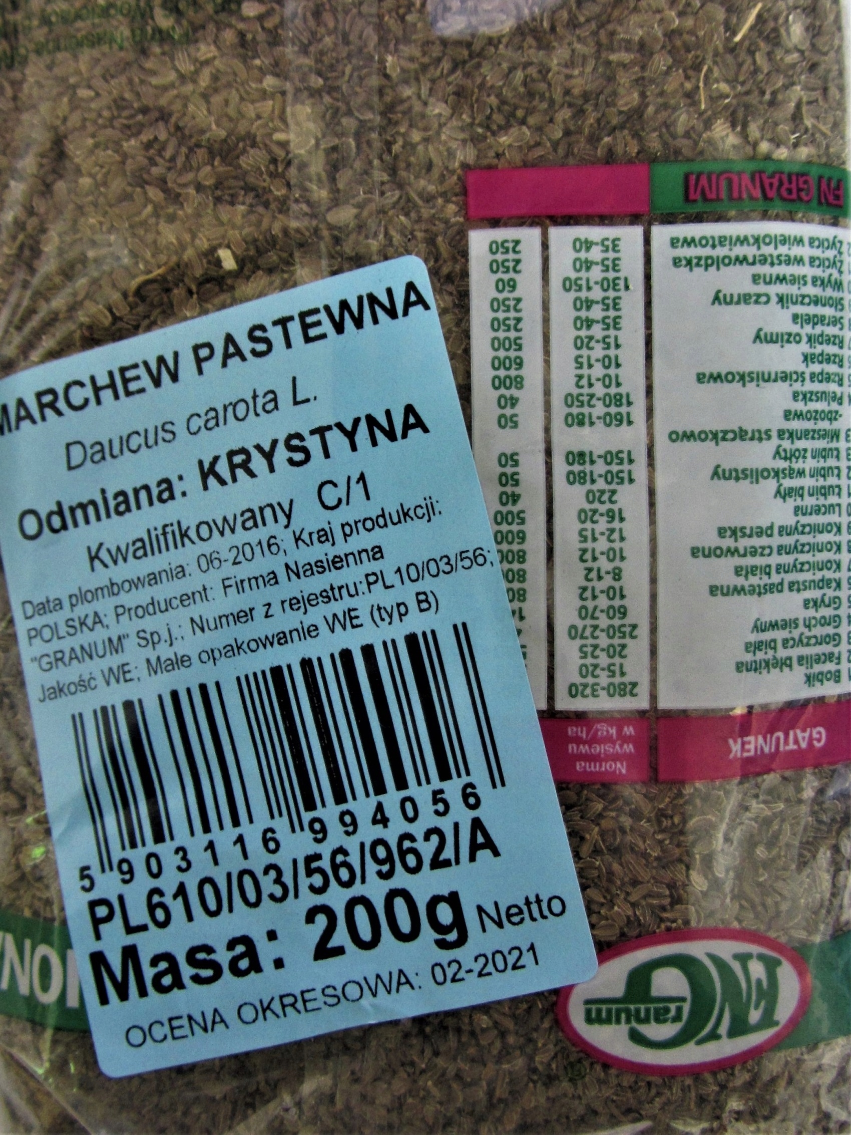 NASIONA Marchew pastewna Krystyna 200 g C1 czerwona