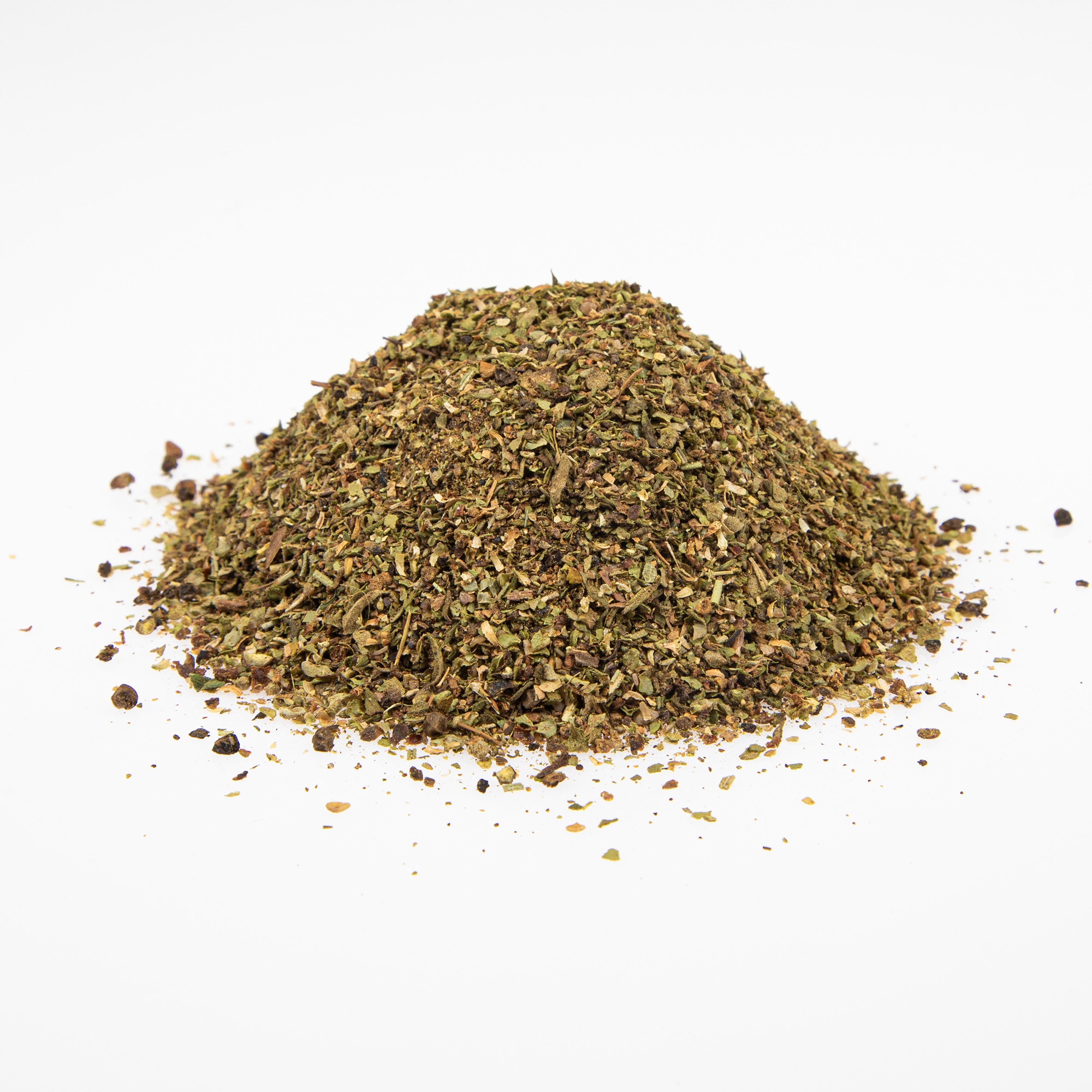Składniki: przyprawy 75% (kolendra, jałowiec, ziele angielskie, pieprz czarny, liść laurowy), zioła 25% (majeranek, cząber, rozmaryn 5,5%, tymianek).