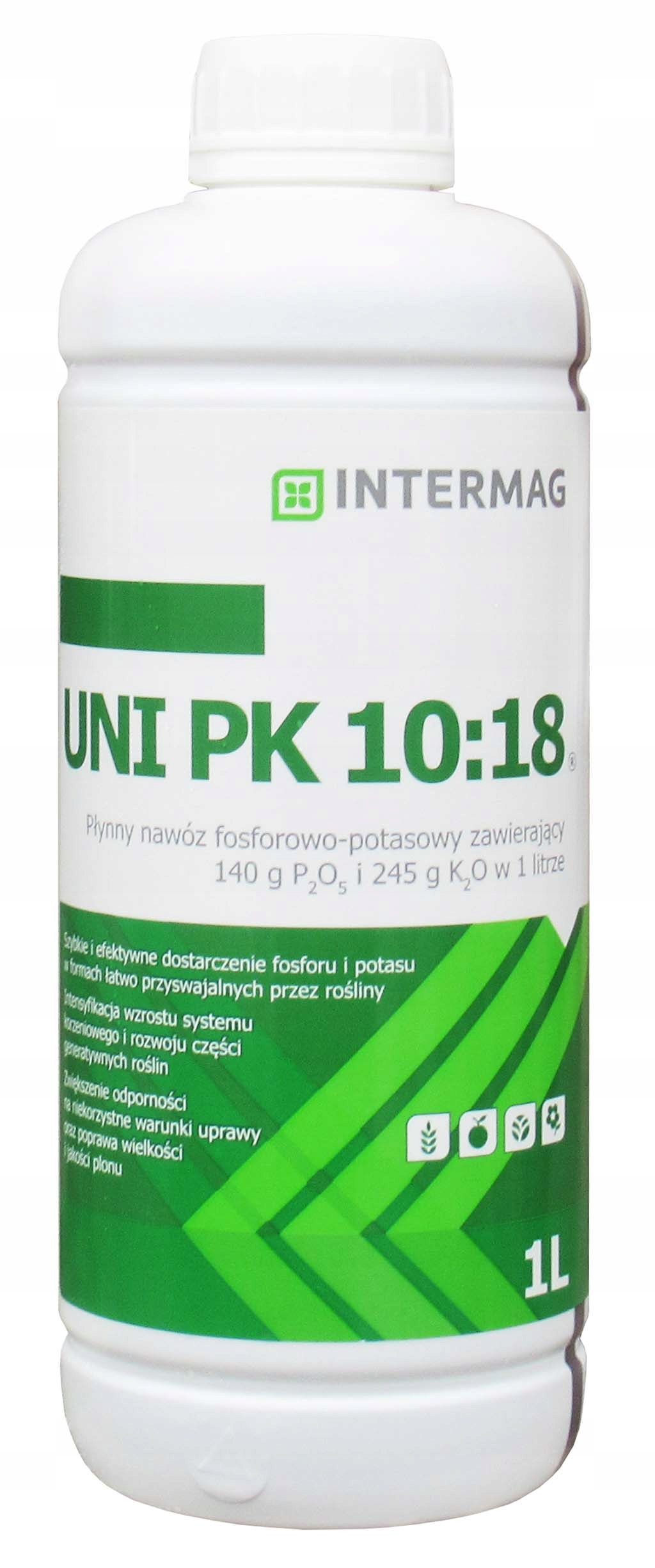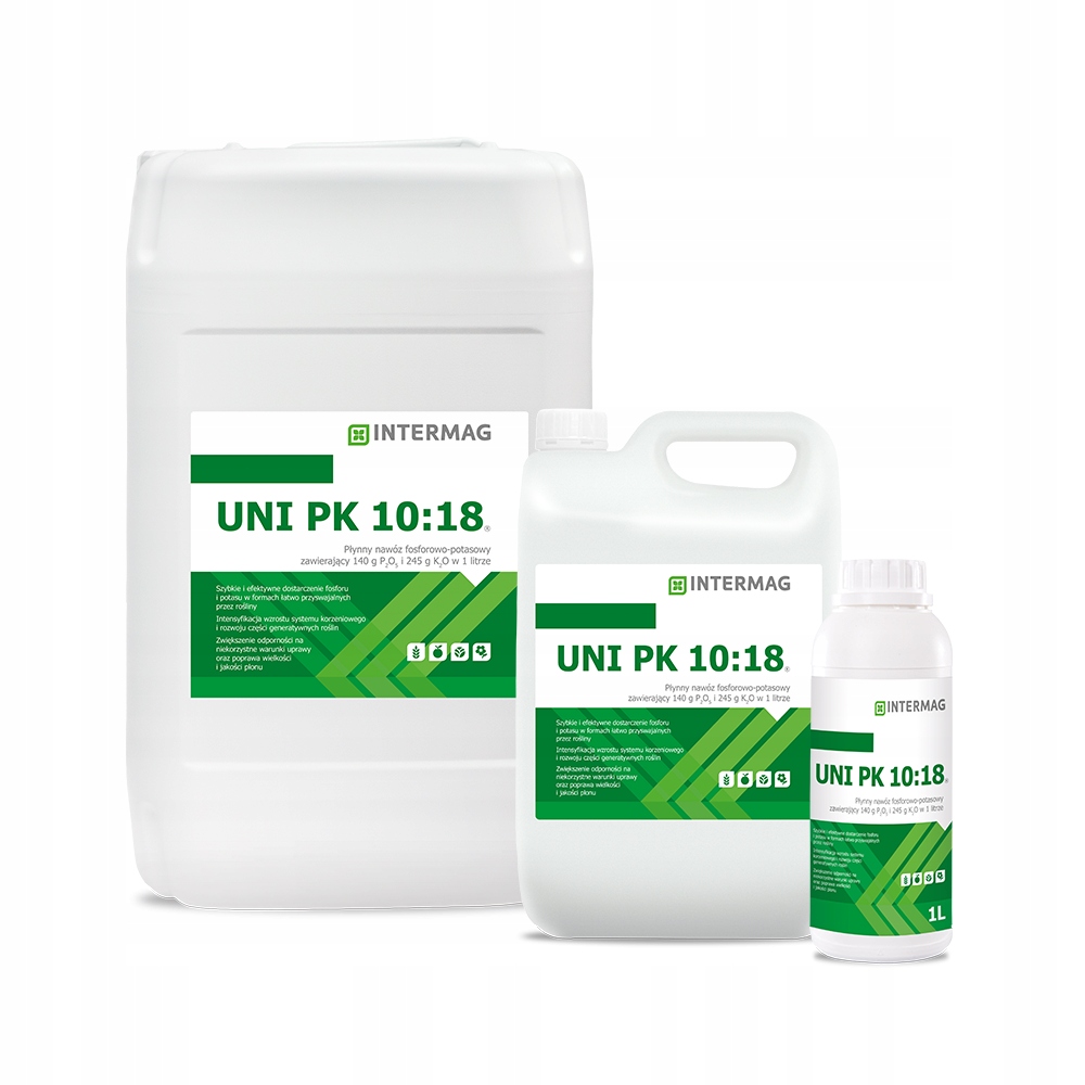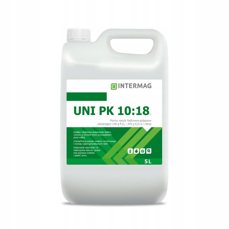 UNI PK 10:18 to nawóz z dużą zawartością fosforu i potasu. Stosowany nalistnie, w fazach intensywnego wzrostu roślin w uprawach rolniczych, sadowniczych, warzywnych.