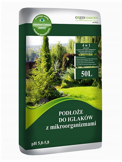 Podłoże przystosowane do specyficznych potrzeb drzew i krzewów iglastych, gotowe do użycia w gruncie i w pojemnikach, kompletne w łatwo przyswajalne mikro- i makroelementy.
